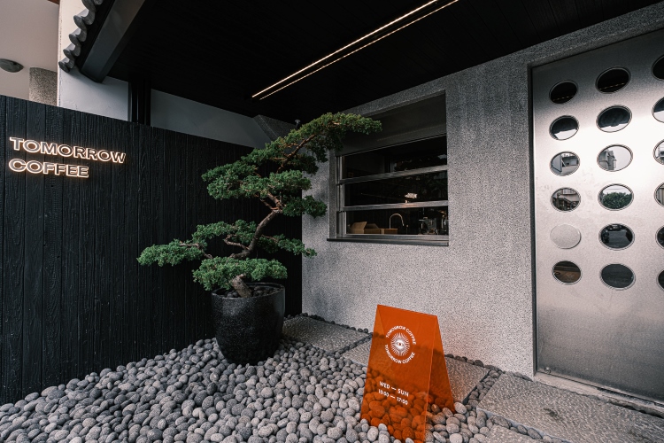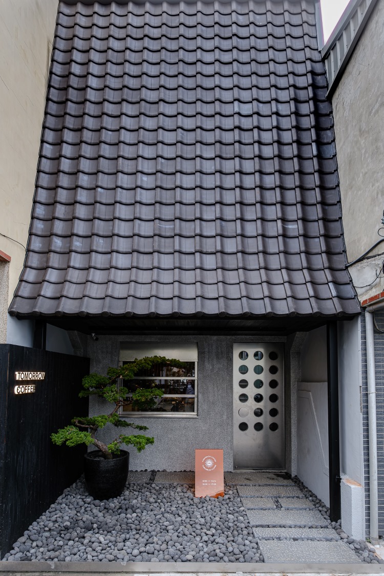 台中黎民新村作為1975年最後一批完工的眷村,棋盤格的巷道與民宅至今仍保留得十分完整,是在被大片重劃區切割的台中南屯,格外珍貴的一處懷舊風景,特殊的眷村聚落風情也吸引許多文青、特色店家進駐。在夏日悄悄開幕的「TOMORROW COFFEE」更是靜靜轟立在兩棟民宅之間,從平凡的老巷口看過去,完全想像不到這裡藏有一間設計感如此強烈的日式現代風宅邸,枯山水庭園的砂礫與高聳的傳統屋瓦讓人驚嘆,與兩旁民宅強烈的反差感有點像是在京都巷弄裡探店的那種驚喜感。