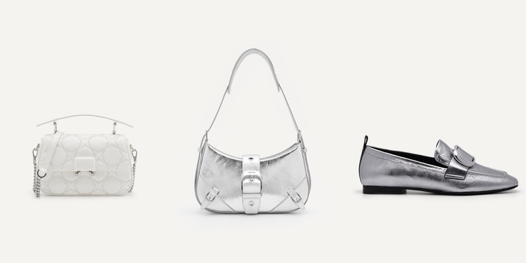 PEDRO 也跟上今年秋季時尚圈興起的金屬風熱潮!以銀河星際為靈感概念,將鞋包都換上星星圖案及金屬銀色系外衣,流暢的輪廓與強烈的金屬配件形成對比。Maisie 迷你單肩包看似簡單的全白設計,鑲上星形圖樣以個性元素提升整體造型;Helix 單肩包華麗的科技銀及金屬搭配,讓你同時表現出大膽前衛和優雅感;Eden 皮革樂福鞋以方形鞋頭和銀灰色光滑輪廓,散發出精緻氣息讓你只做簡單搭配也能展現搶眼性格。