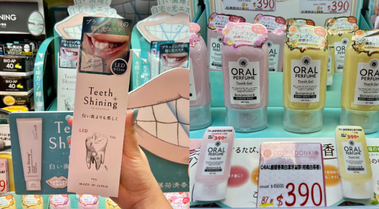 日本女孩對於牙齒細節真的很講究!在這次的「COSMEDONKI」專區中,儂編最先發現的便是兩項美牙法寶!「攜帶型LED冷光燈組」是一款美白牙膏搭配LED冷光燈的行動美容組!不需花大錢預約療程,自己居家就能享有微醫美冷光美白的效果,看著看著就讓人躍躍欲試。另外,右手邊這款,則是口腔專用的美白香膏!凝膠型態自帶花果清香,美牙之餘還可以讓口腔清新舒爽呢!