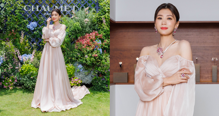 在此次「Le Jardin de Chaumet」頂級珠寶系列發表的盛會上,亦隆重邀請了雙金影后賈靜雯作其主要嘉賓。她配戴價值近1億元的「Iris(鳶尾花)」套組現身看展,鑲嵌粉紅尖晶石與鑽石的項鍊、耳環與戒指,襯托出她的好氣色與金馬獎、金鐘獎雙科影后的氣勢。