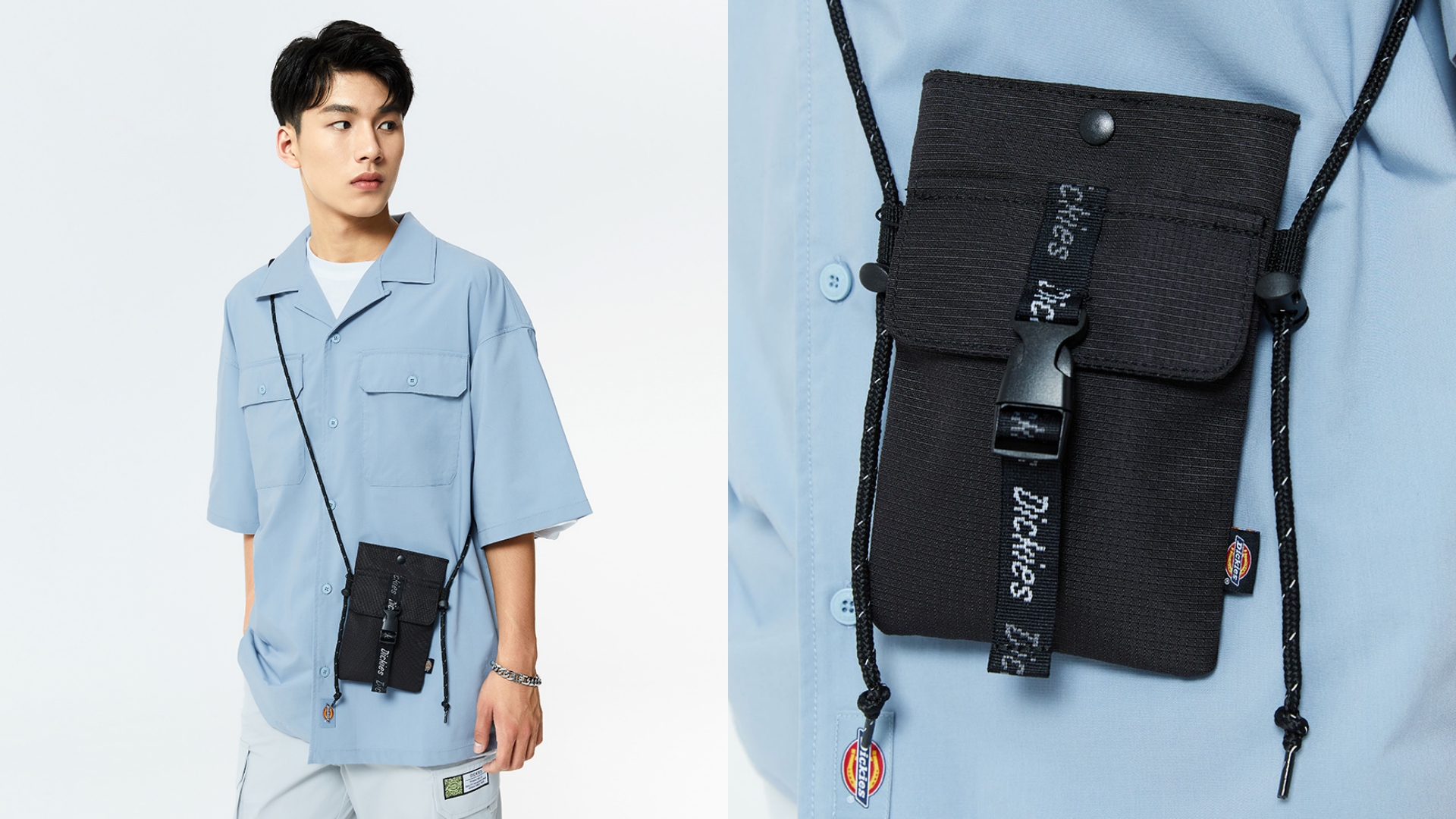 8. Dickies 黑色品牌字母織帶工裝風手機包