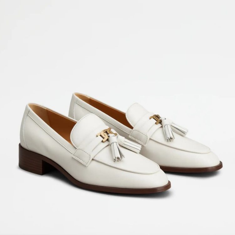 這雙樂福鞋運用木製的低跟鞋底呈現,全白的鞋身搭配上尖頭與流蘇的裝飾設計,整體典雅的風格,讓女孩穿上後都能氣質滿分!(商品售價:NT32,700)