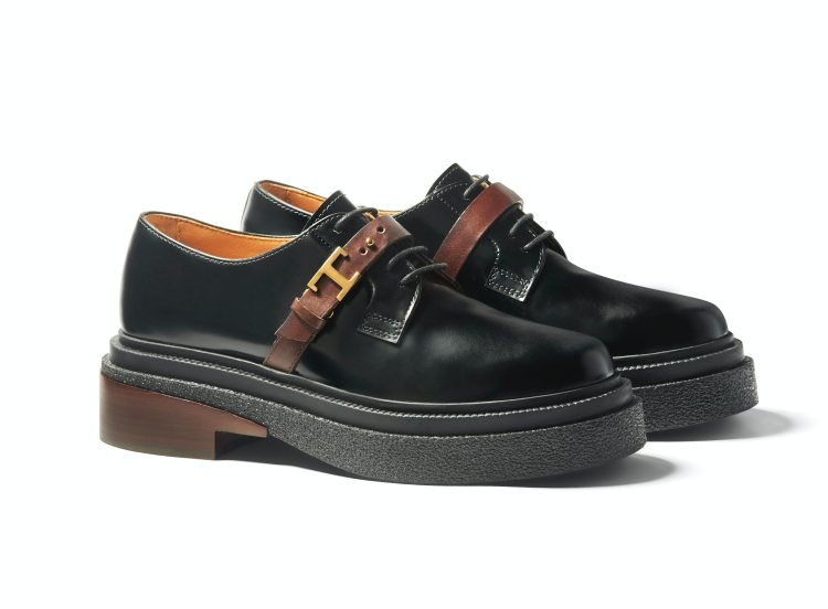 如果想挑一雙實用與搭配性兼具的鞋款,那這雙帶有皮革綁帶的皮鞋請列入首選!在鞋底的設計上品牌運用膠底與木製鞋跟做結合,讓整雙鞋款帶有一絲叛逆的氣息,而 T 字扣帶的點綴,更為鞋面增添層次感。(商品售價:NT39,900)