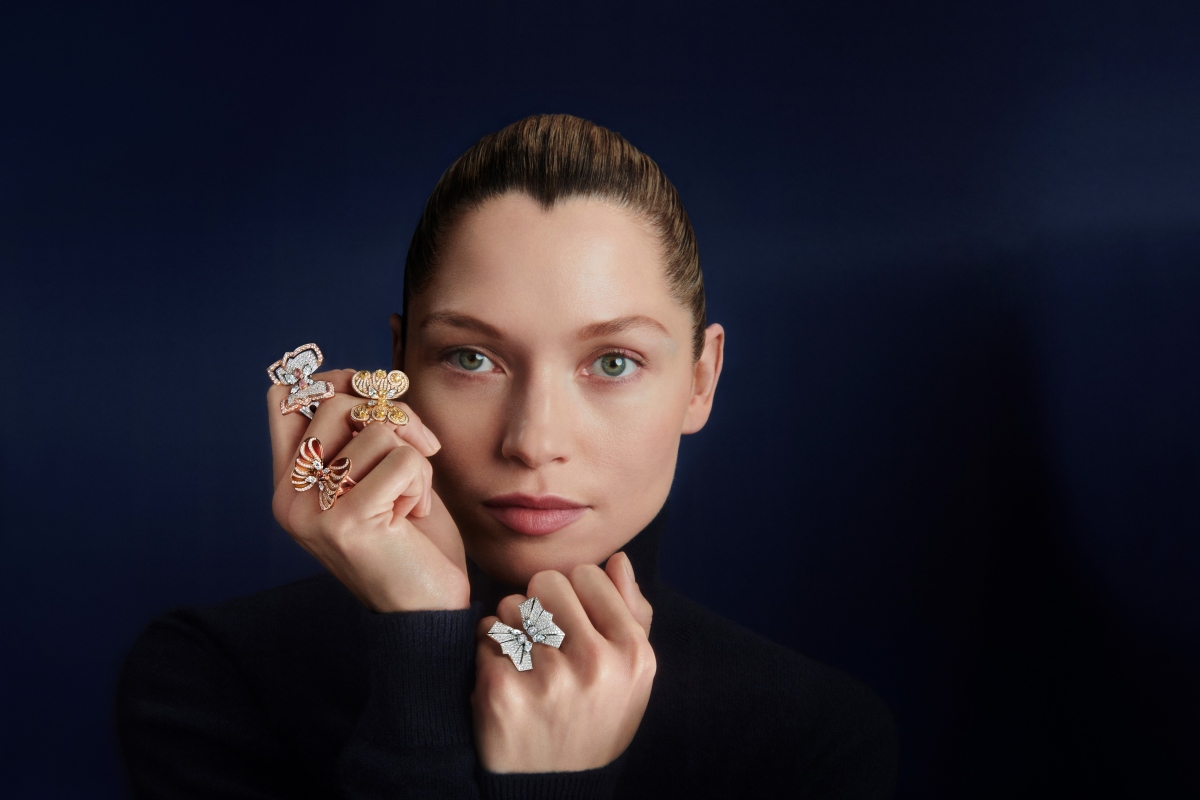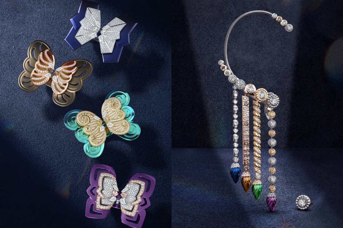 以精緻美鑽設計聞名的英國頂級珠寶品牌De Beers,經常以大自然中的萬物為靈感,不管是出淤泥而不染的清新「蓮花」,亦或是翩翩起舞的花樣「蝴蝶」,都是品牌獨有的經典標誌,本次的「Metamorphosis」高級珠寶展以「Prelude」系列揭開序幕,於第一篇章中,以耳掛作品象徵四季的鈦金屬彩色蛹;第二篇章則帶來了經歷蛻變之後,四隻破蛹而出的美麗蝴蝶,分別以四種姿態詮釋四季之美。