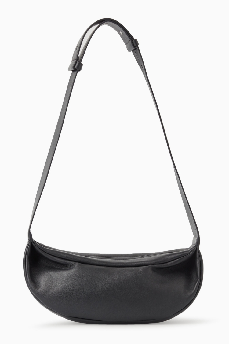 與Uniqlo同處快時尚領域,面對「半月包」這一道題,Cos則是更著重在面料的選擇上,選擇使用羊皮的材質而非尼龍或燈芯絨,以皮革質感更顯示出自身格調,在追求時髦之際不顯得過度張揚,提供時髦精另一個簡約好選項。