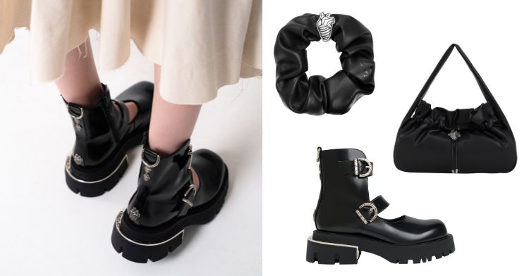「每一顆心臟的小任務,就是鼓勵著自己的主人,勇敢表達內心的感受與真實的情感。」根據本次的聯名主題「穿上無所不在的心 (Heart Is Every Wear)」,共有三件令人移不開視線的黑暗系單品,心臟鉚釘厚底靴、心臟抽繩包和心臟抓皺髮圈。神祕又帶著光澤感的漆黑色調,搭配小小的銀色金屬心臟裝飾,讓每一件單品都充滿迷人細節,是步入初秋不可錯過的一次聯名收藏。