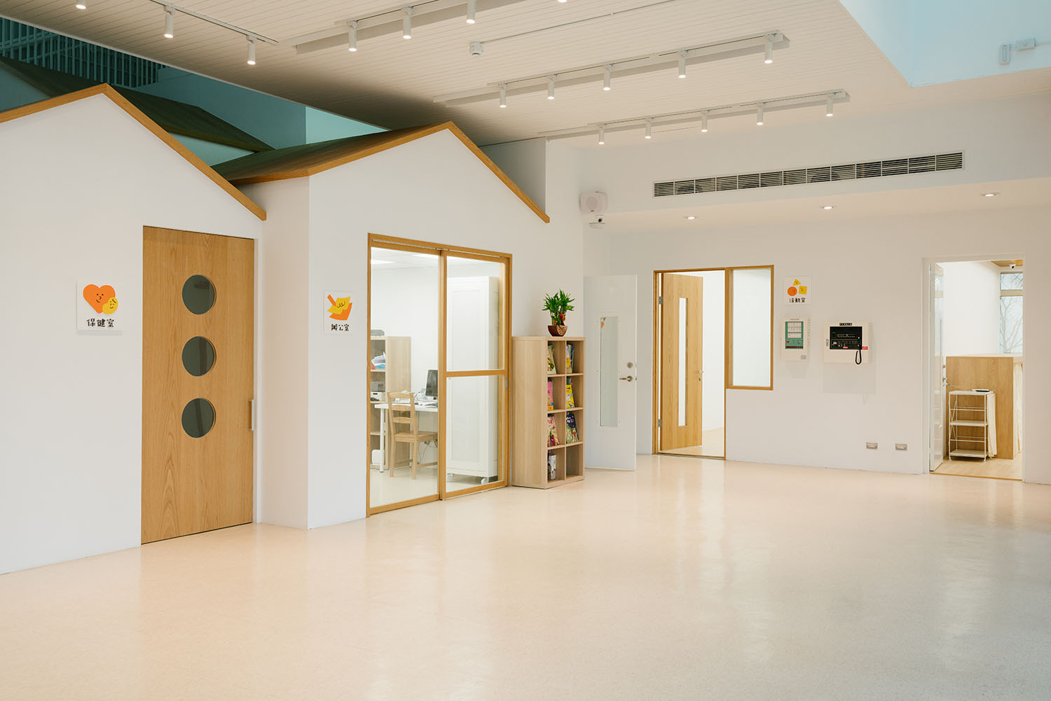 MUJI 向來不是「玩色」高手,因為在品牌眼中,更專注於「自然」的色調。這回,MUJI 空間改造團隊試圖扭轉大家對幼兒園的既定印象,不讓五顏六色充斥在孩童周遭的成長環境。延續品牌的溫暖色調,運用大量的木質調與白色調,去形塑一種更舒適、更適合人使用的空間氛圍,而非只是一所「學校」而已。