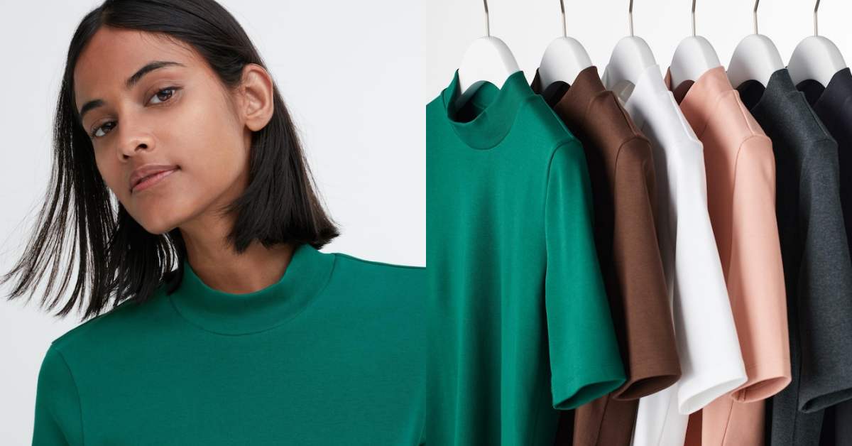 不同於一般短袖上衣,這款棉質中高領 T 恤,加入中高領的設計,厚度恰到好處的棉質混紡材質,穿起來舒適貼身。不易透膚、具有適中厚度及合身感的棉質混紡素材。可以單穿,也可以用於層次搭配。不論紮入下身,或是放出上衣,都能創造不同的風格,一共推出六種顏色,推薦給追求「設計感」的你。