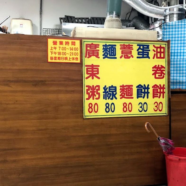 老店的菜單和幾十年來也沒變過的裝潢一樣簡單樸素,不過從小到我們家永遠只吃廣東粥和蛋餅,其他品項也不曾試過。每次周末早上來,店的生意也不是說有多好,但外帶的人倒是絡繹不絕,絕大多數都是附近的居民。