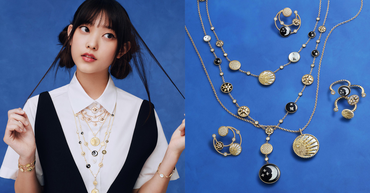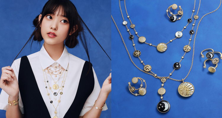 好的,設計靈感說完了,再轉回來介紹最新的「Rose des Vents」新款式及形象照部份,除了NewJeans的Haerin之外,另有歌手劉雨昕及女演員Julia de Nunez議同樣列在本次全新廣告視覺中。各自搭配是2條長項鍊及1只耳扣,其珠寶雙面式穿戴的巧思,在在都為迷人設計與配搭者間,挹注了更多的互動。