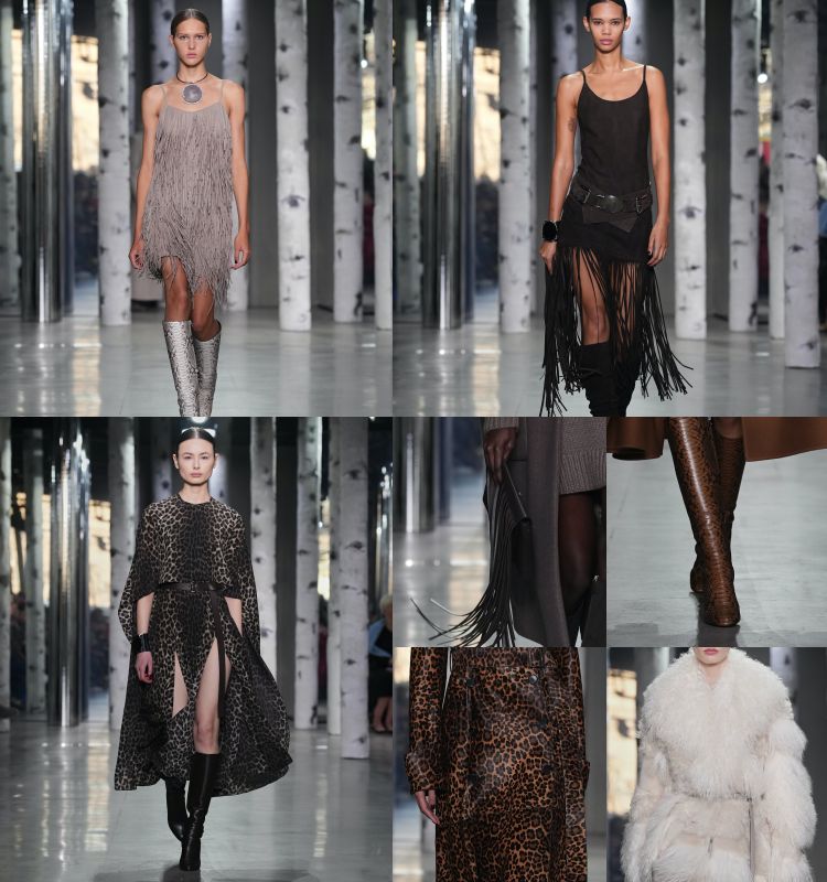 成套西裝及閃耀的晚禮服,已經是 Michael Kors 的必備元素,在今年我們一能看見品牌的標誌性單品出現在伸展台上,但不同以往的地方在於,這次設計師將時空定調在 70 年代,當年波西米亞文化席捲美國,這股自由、奔放的氣息深深影響著 Michael Kors,因次在本季你能看見許多服裝上出現流蘇、動物紋以及皮草的元素,品牌透過 onetone 色彩呈現,將其帶有嬉皮風格的服飾,化作摩登時髦的單品。