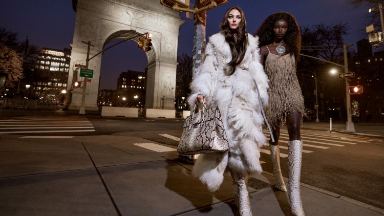 Michael Kors 絕對是美國最具代表性的品牌,從摩登都會的套裝,到刺繡亮亮片的閃耀小禮服,每一季的發表像在續寫紐約黃金年代的文化,在 2023 年秋冬 Michael Kors 用流蘇、動物紋及皮草元素,把波西米亞米雅的風格轉化,展現出更具當代摩登的形象,在新品上架之際,品牌釋出了由 Anok Yai 及 Vittoria Ceretti 兩位新生代超模入鏡,以紐約格林威治村和華盛頓廣場公園為背景,展現不同以往美式風情