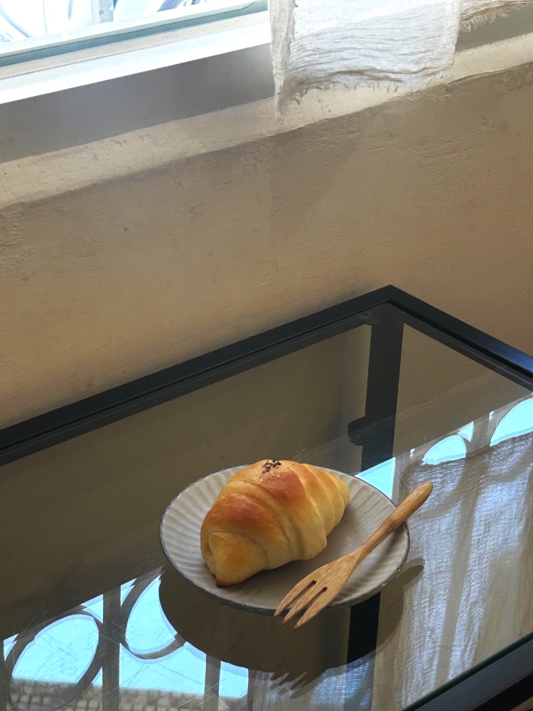 探店當天只點了他們家招牌的蛋餅和咖啡,卻有好幾組客人推門詢問鹽可頌,讓人不禁好奇這個沒在菜單上,只貼了一個小貼紙標註40元的鹽可頌,到底有多好吃?一問之下才知道因為每天限量40個,這個自製鹽可頌竟然要排快一個月才有得吃!儂編二話不說付錢預定,耐心等待後為大家來開箱!由家庭小烤箱一點點慢慢做出來的鹽可頌,一口咬下是鹹鹹的脆皮,裡面超級柔軟卻相當有嚼勁,奶油香氣十分迷人,小小的可頌兩三口就沒了,實在意猶未竟,現在只後悔自己沒有訂一袋回家!