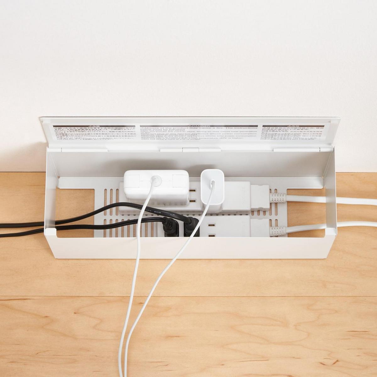 還在困擾讓人煩躁的電線收納嗎?有了這個無印良品的新品「鋼製掀蓋式電源插座收納盒」就能還你乾淨的桌面了!極簡的外型能低調融入於桌面或角落,讓你輕鬆把延長線收起來,底部有通風口可散熱,附有止滑零件,上下皆有開口可整齊佈線,使用上非常順手。
