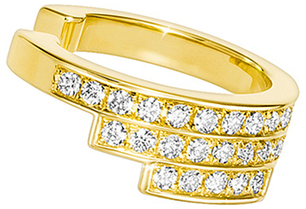 設計以極致閃耀的鑽石結合18K黃金層疊交錯的層次感,宛如精美的雕塑藝術,彰顯AHKAH珠寶的精湛工藝,而富充滿力量的設計,展現具現代風格且存在感的精緻珠寶。