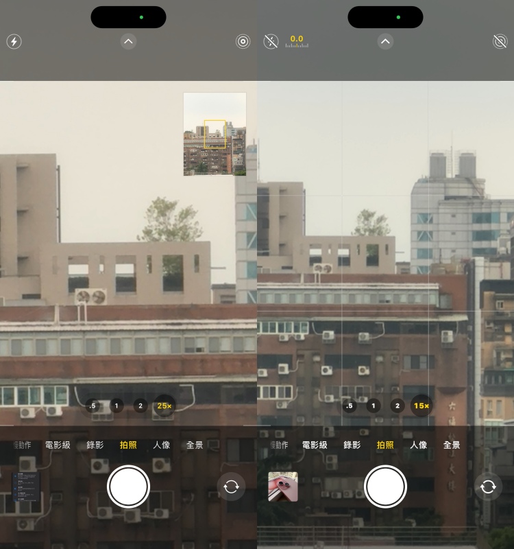 左/專業單眼、中/iPhone14 Pro Max、右/iPhone 15 Pro Max。
