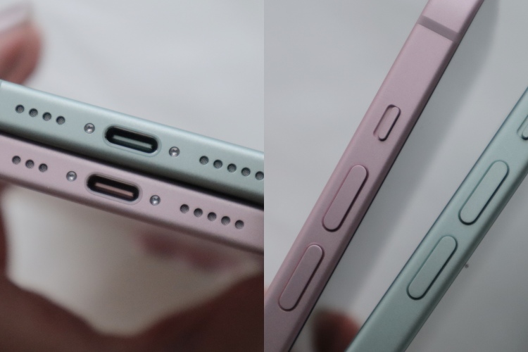 iPhone15、Plus推出黑色、藍色、綠色、黃色、粉紅色5款顏色,也是首次Apple挑戰背板使用霧面玻璃,質感上非常高級,邊框部分則搭配使用霧面金屬略有一點點弧度設計手感非常好。本次很有亮點的新按鈕在iPhone15、Plus是沒有的,但充電孔部分一樣有更新成USB-C。
