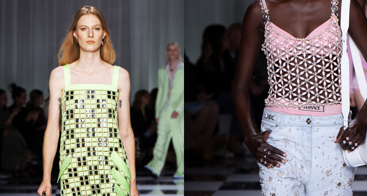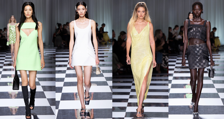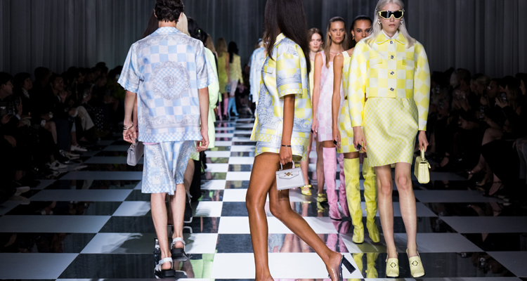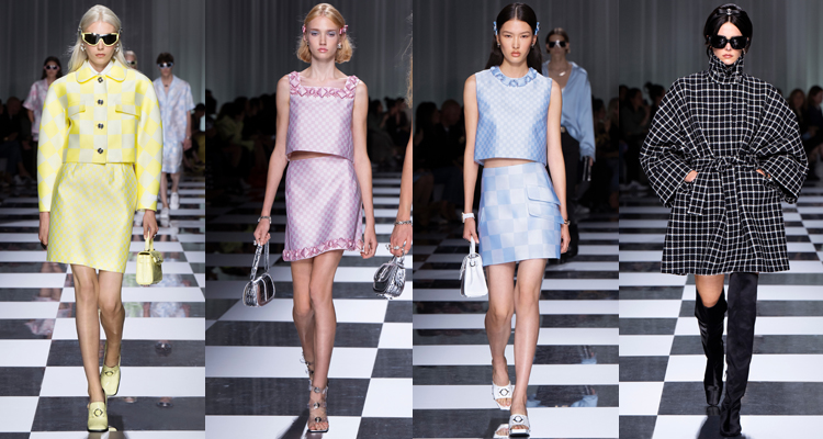 本季不論是從秀場的地板,到模特兒身穿具有「Versace Contrasto」格紋圖案的服裝,這一標誌性的格紋圖案首見於1982年的春夏系列,Donatella Versace將其再次運用於主要設計當中,無疑也是回溯傳統根源的精神。