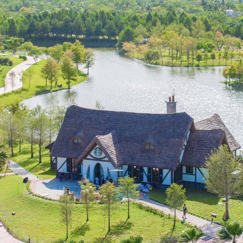 星巴克花蓮理想門市就座落在知名的理想大地飯店內,花蓮市區往南的主要休息站,同時坐擁海岸山脈與中央山脈,建築外觀就像童話故事中的夢幻小屋,結合美式鄉村風與歐式文藝風的建築樸實又浪漫,後面直接是浪漫小湖,搭配四季都有不同景致的落羽松美景,隨便一拍都像明信片上的油畫美景一樣啊!只要一站就能同時體會花蓮的好山好水,勢必將成為花東地區旅遊打卡的新亮點。