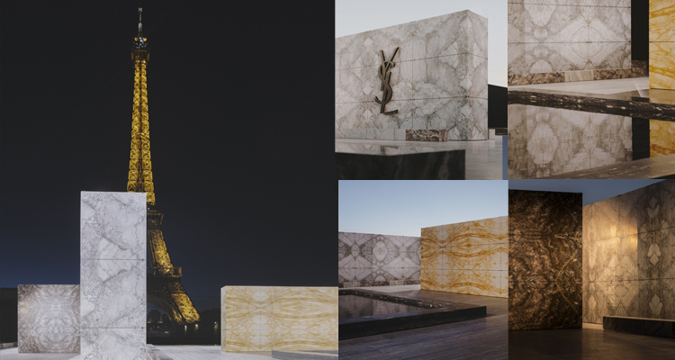 而秀場更是輝映著聖羅蘭品牌的左岸精神,不僅能遠眺巴黎鐵塔,場地四處更是以形象店裡慣見運用的大理石材作為這次的主要裝置,使環境空間極富現代感,同時凸顯2024夏季新裝的柔美與優雅。
