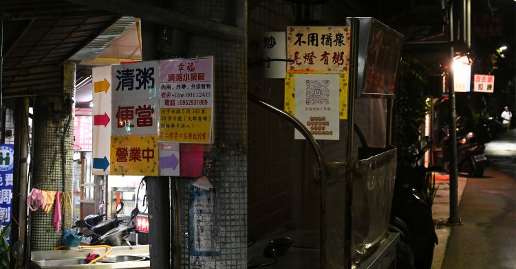從延平北路六段的巷口走進來,巷子越轉越小、越來越暗,要不是在每一個轉角口都貼心提醒的路標,還有最後那句「不用懷疑,亮燈有粥」的標語,不然真的很難找到這家藏身在民宅深處的「幸福清粥小菜」。來到門口一看竟然是一間男士理髮的老民宅,拉開門進去也完全沒有感覺進到一家餐廳,客廳擺著一組舊沙發和播著八點檔的電視,除了多了幾張餐桌之外,這根本就是走進了阿嬤家的客廳。