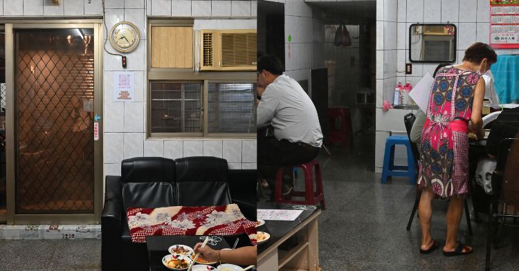 菜單攤開都是家常到不行的料理,菜鋪蛋、高麗菜、五花肉、香腸炒飯等等,選項倒是意外的很豐富,並且全部都是由客廳後面的家庭廚房一道一道現炒出鍋,所以需要耐心的等候。選好菜後找阿嬤點單,這時候才注意到牆上貼著「阿嬤聽不懂國語,請說台語」的標語,一時間差點轉換不過來,還好親切的阿嬤聽得懂儂編不流轉的台語,最後成功點單。