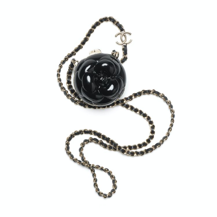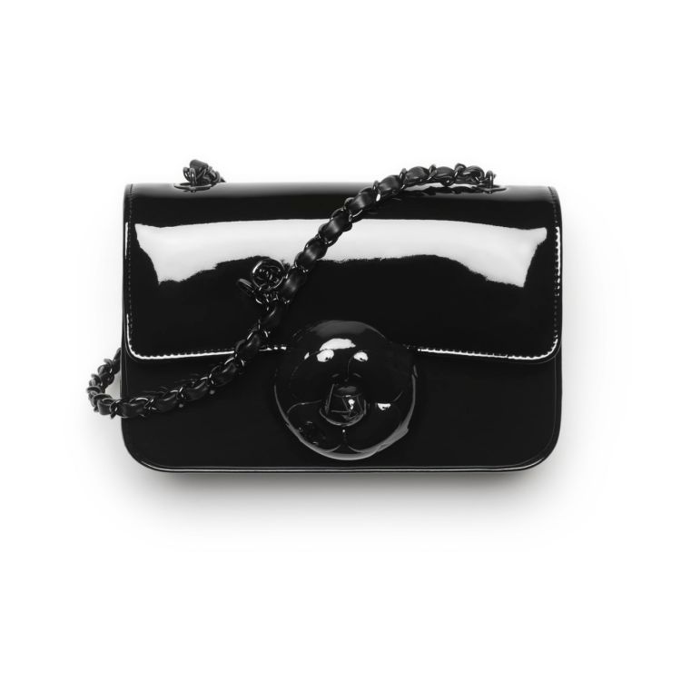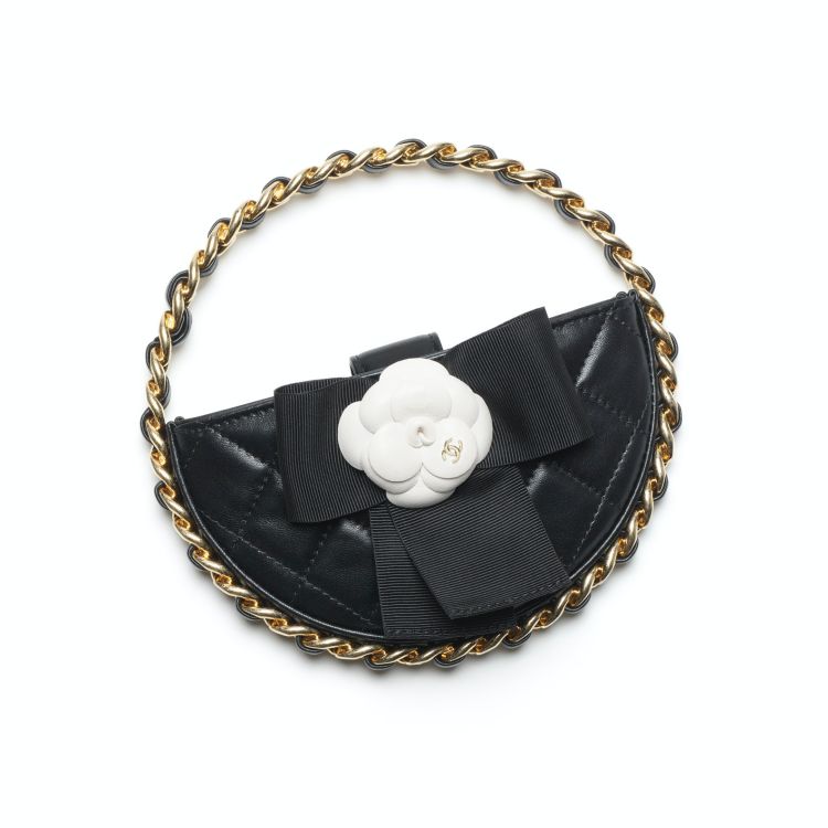 Chanel 大秀上的硬殼包,一直是許多收藏家垂涎的目標,這款以山茶花為靈感的鏈子包,運用全黑硬殼的方式呈現,在搭配上皮穿鏈的設計,又帥又優雅的外型讓人難以抵擋,內部附有鏡子的設計,讓女孩能更方便補妝。(商品售價:NTD105,600)