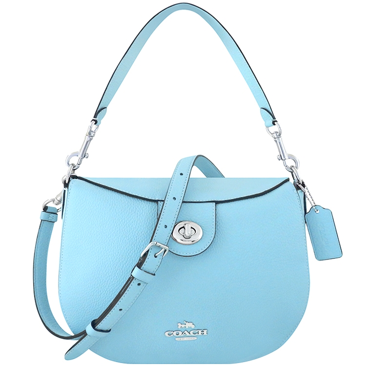 處女座命定色單品推薦一:COACH 天空藍色荔枝紋皮革肩背/斜背兩用包