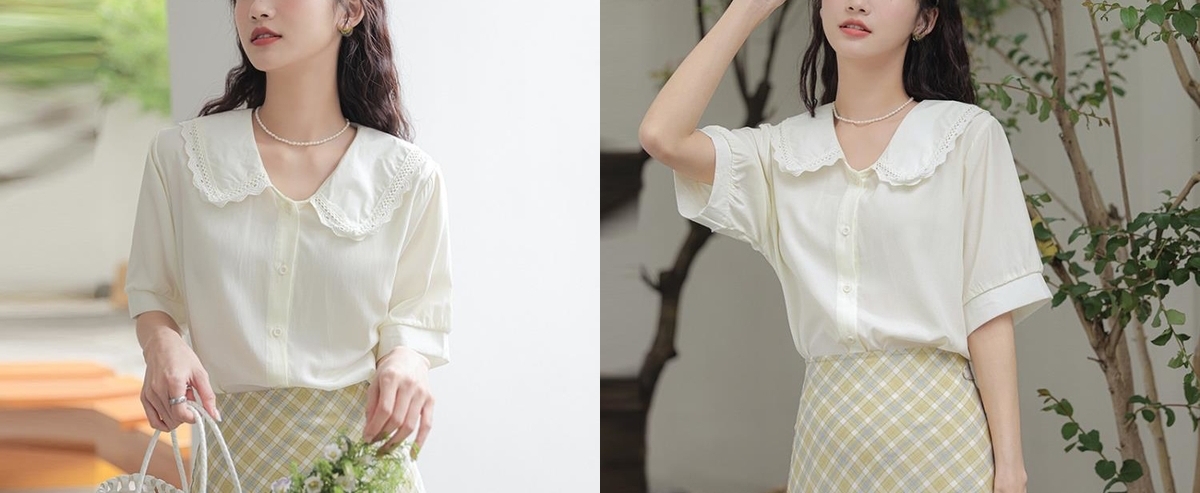 處女座命定色單品推薦二:木耳邊娃娃領淺黃色女泡泡袖上衣