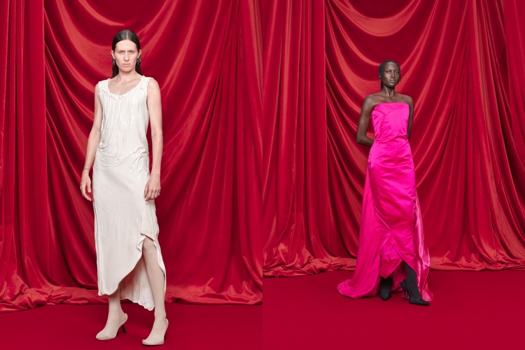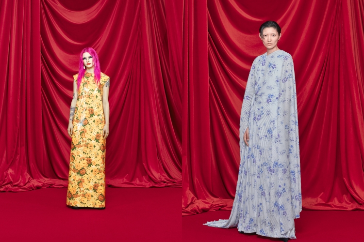在1950年代,品牌創辦人Cristóbal Balenciaga用布料、廓形改寫女性的服裝形體,而Demna在服裝的褶皺與形體上看得見在延續創辦人的精神,不過在運用印花上卻大膽,運用當代審美中容易“過時”的碎花印花,運用在褶皺長洋裝、皮革洋裝上。創意總監用自身獨到的“怪品味”,再次奪下大眾目光。