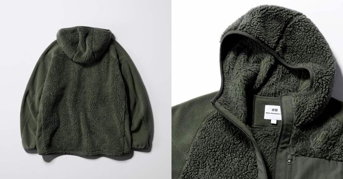 除了「再生 Hybrid 羽絨外套」,White Mountaineering 也重新詮釋 UNIQLO 另一項經典單品,推出「刷毛連帽拼接外套」。寬版的設計結合舒適的面料,細節更是充滿設計巧思,左胸有附拉鍊口袋,腰部也附口袋,袖口滾邊款式,實用之餘,也散發低調的優雅,一共推出四款顏色,包括:黑、白、棕、綠。