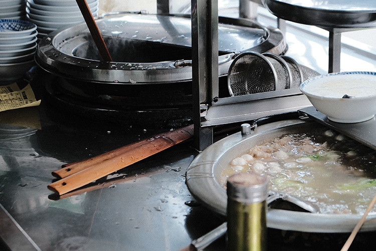 每天早上10點半開門,雖然賣的是早餐時段,但以嘉義小吃來說算是開的很晚了,因此在營業前總會有很多饕客擠在店門口等著進門。當天Naomi編也是10點初就到店上,老闆早早放我們進店內先坐,碰巧遇到錦魯湯要下鍋的瞬間,那鍋氣香就讓人覺得很不簡單,而到底什麼是「錦魯麵」其實說白了就是羹麵。