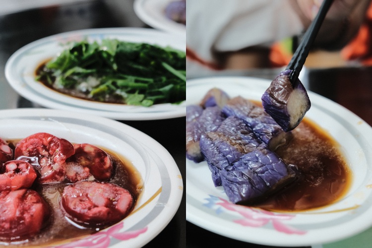 之前【食間到】有跟各位介紹過嘉義另一家涼麵老店「四味果汁」,若以美乃滋涼麵來說,崇文的更清爽,醬汁反而有點香草冰淇淋的味道,比較沒有像四味注重蒜泥香氣,夏天吃很開胃。Naomi編反而覺得小菜才是它們家的強項,琳瑯滿目超多苦瓜、茄子、蘆筍等選項非常多,其中南部才有的「紅粉腸」必點,一上桌紅吱吱的確實嚇人,主要是使用豬腸衣,灌入醃料、豬肉等每家店做法不太一樣,吃起來非常Q(很難形容他的口感)有點像縮小版的肉圓,很建議第一次來的你吃看看!