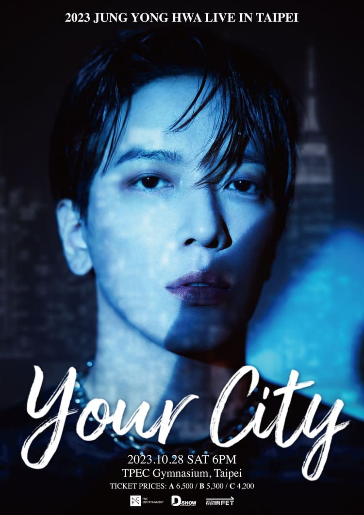這次將於 10 月 28 日再台北天母體育館舉辦全新巡演《2023 JUNG YONG HWA LIVE ‘YOUR CITY’ IN TAIPEI》,恰巧近期他也剛剛發行第二張全新迷你專輯《YOUR CITY》,專輯中除了親自作詞、作曲外,更保有獨特帥氣兼具爽朗的個人風格,挾著高人氣以 SOLO 出輯方式回歸的他更憑著這張專輯空降各地區數位榜第一,包括 iTunes 專輯榜、流行專輯榜、KPOP 專輯榜上,於日本、新加坡等6個國家及地區都排名冠軍,人氣依舊的他可說聲勢銳不可擋!