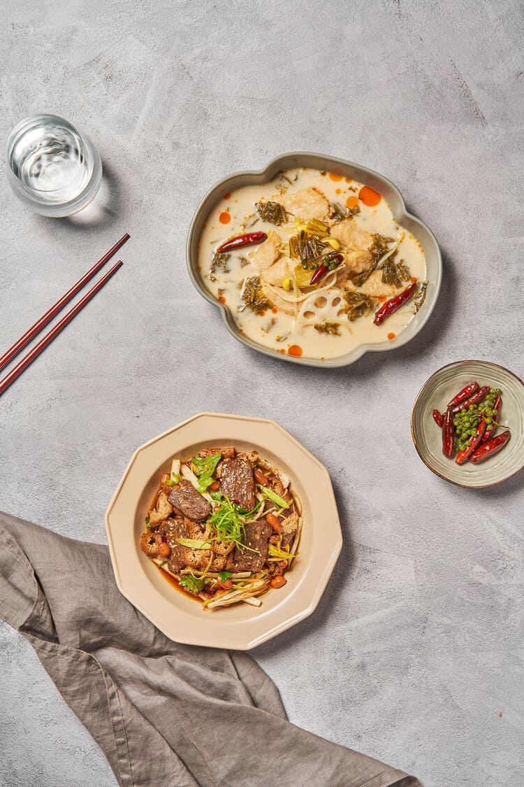 「老罈酸菜U」以燕麥奶、豆奶進行熬製成香濃不膩口的湯頭,再藉由師傅的巧手以新海鮮製成魚柳,從外觀到口感都令人驚艷,身為饕客的你必點!「松露奶霜起司漢堡」則以新豬肉製成的漢堡排,淋上馥郁的松露奶霜醬,加入經過胡椒炒製的蕈菇,鹹香滋味就連肉食者都無法抗拒!
