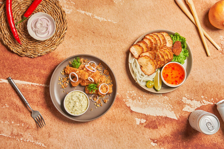 「肋排炸物拼盤」肋排以年糕為形,搭配新豬肉特製成仿似肋排的外觀,軟糯的年糕、新豬肉的豐富口感與微甜口的醬汁,搭配烤櫛瓜、酥炸洋蔥圈等配菜,好吃又不膩口超刷嘴!「酪梨蟹若口袋餅」將酥炸後的新海鮮佐以酪梨醬再包覆在外酥內軟的口袋餅內,保留塊狀的口感,一口吃下口齒留香,是兼具口感與味道的一道時髦小點。