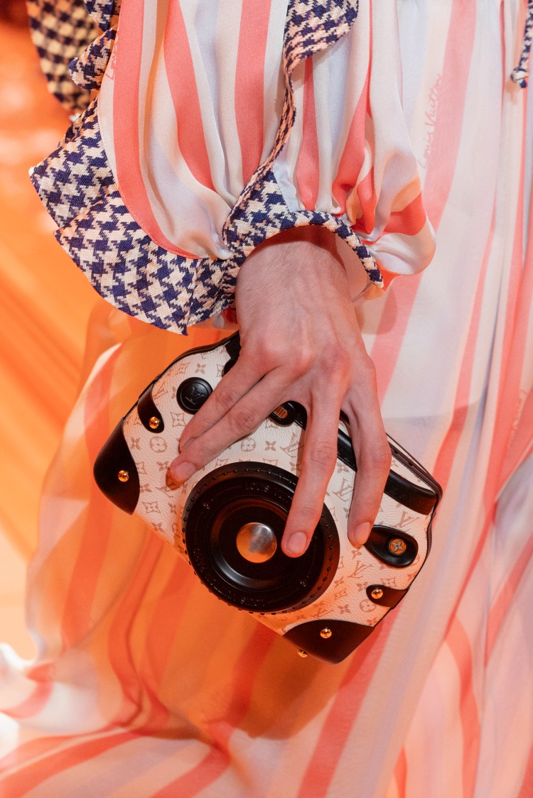 對於成功掀起話題,LV果真不是省油的燈,在2023秋冬以一款「巴黎門牌包」引發熱議,而新一季2024春夏則是要靠上下兩款「相機包」,一款是用來保護相機的皮革保護套,另外一款則是用經典老花打造出一個硬殼的手拿包,不只成功在吸引秀場貴賓的眼球,更會是下一季讓快門猛按的街拍神器!