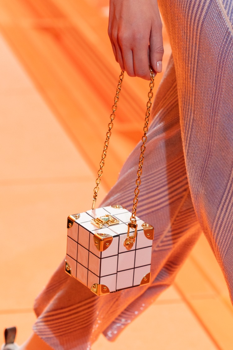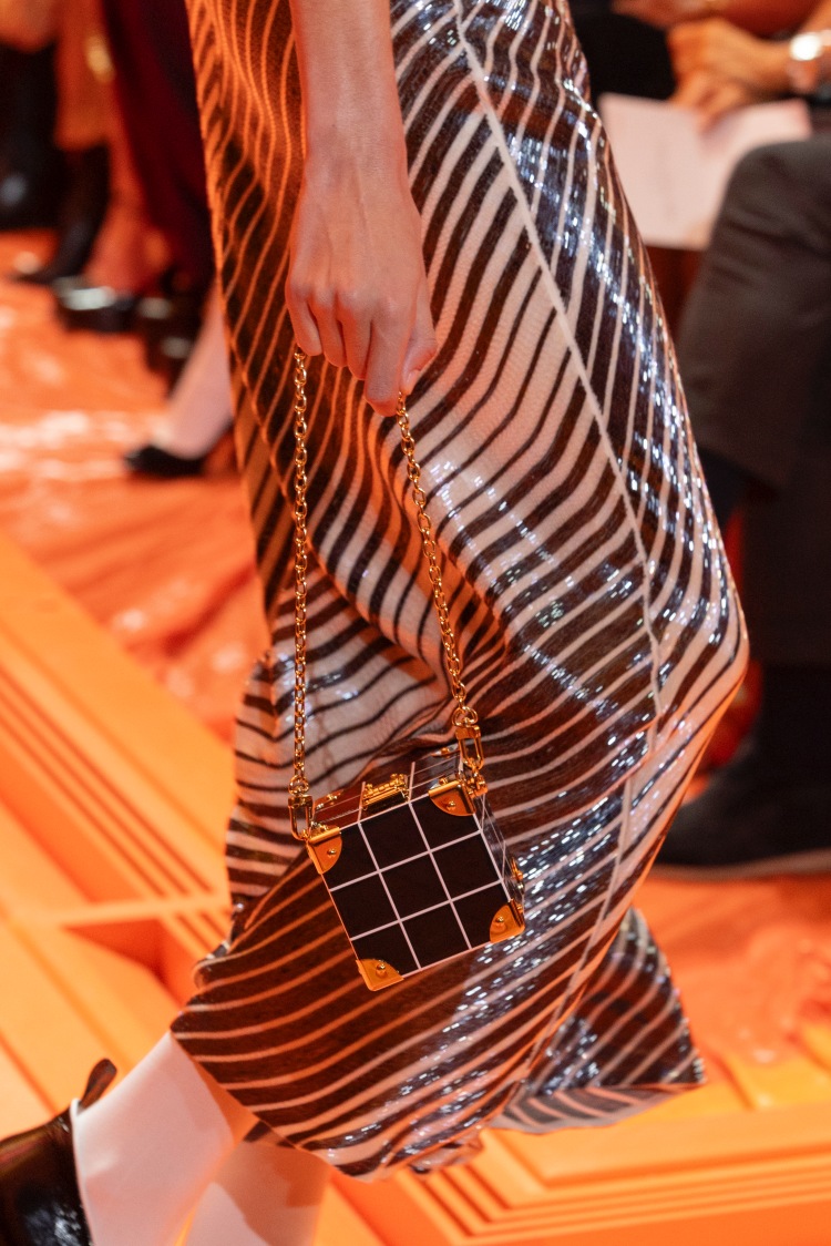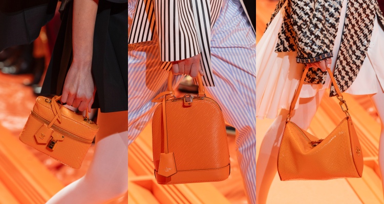 延續著秀場上大面積的「橘色系視覺」,創意總監Nicolas Ghesquière在包袋上也對橙橘色愛不釋手,從化妝方包、“加長型”的水波紋手提包、較為隨性的柔軟包款,全面的套上亮橘色的色調,明年春夏的色彩就靠路易威登了!