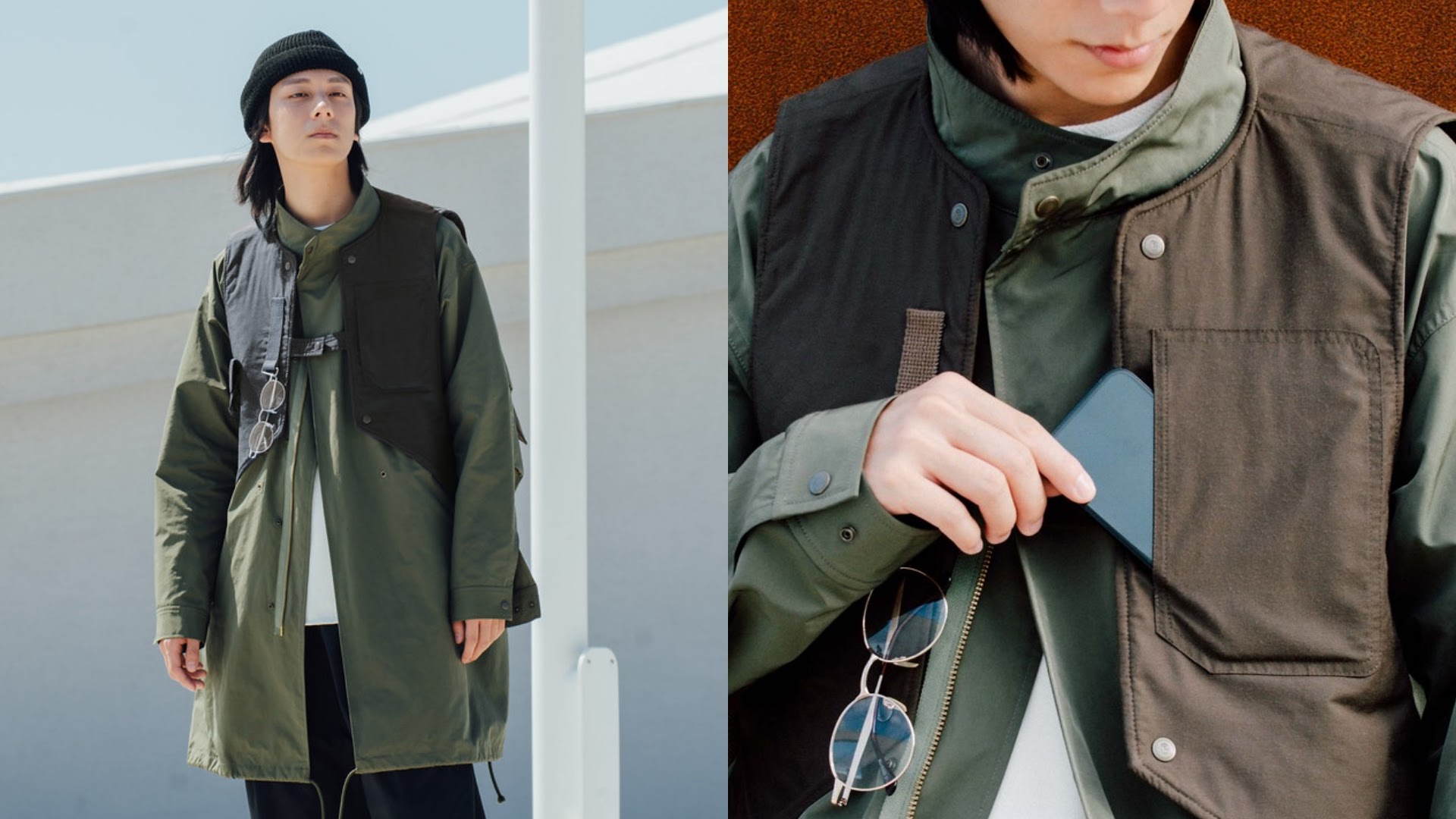 這件能強化造型感,亦能升級收納空間的戰術背心,將是你露營、日常外出的最佳搭配!選用日本製 Modal 記憶桃皮面料,不僅環保永續,獨特的親膚、滑順手感,搭配低彩度的咖啡選色,完美營造出洗鍊的塵舊感,材質吸溼透氣性佳,讓你在層次搭配時清爽不悶熱。背心上有雙向開口袋、口型環及雙口環調整帶設計,無論放手機、耳機或是掛眼鏡、露營器材都很方便。