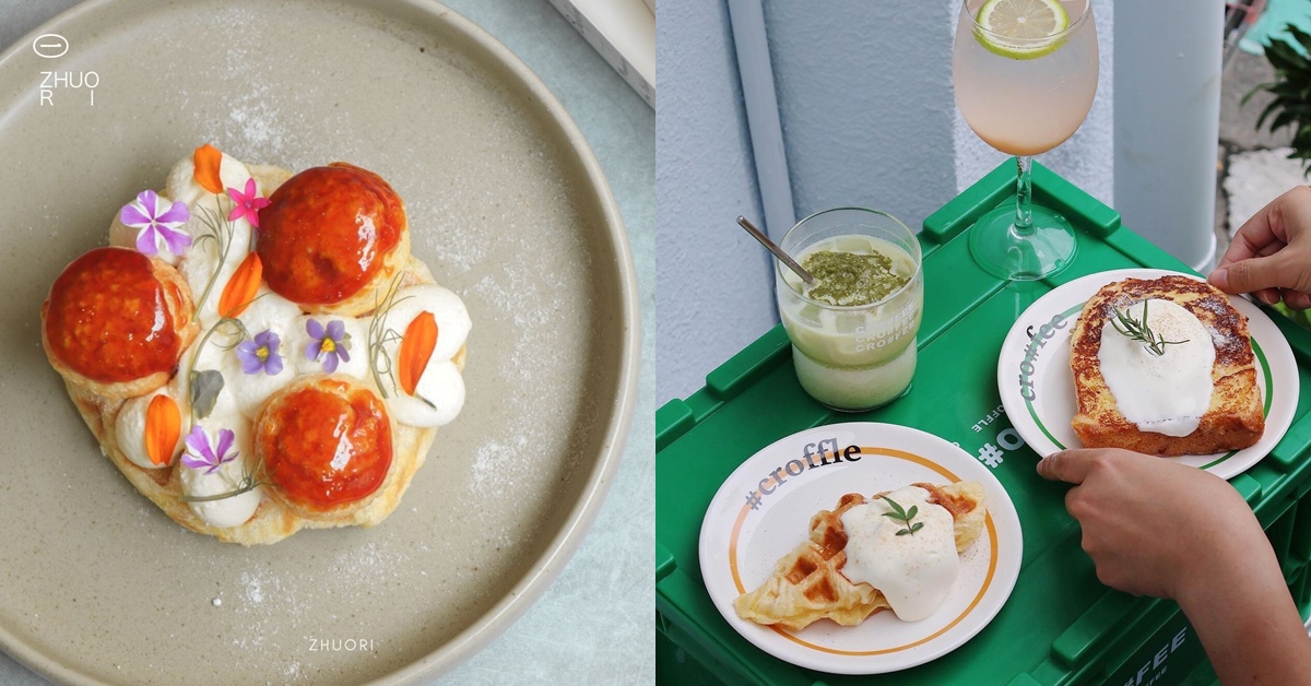 勺日是一間具「東區最美咖啡廳」之稱的韓系質感奶油系咖啡廳,最近更插旗新光三越Diamond Towers,吸引許多網美朝聖。店內除了獨創的「可頌鬆餅堡」鹹食系列,還有一道讓儂編驚豔的「小花園聖多諾黑可頌鬆餅」,它以法式甜點聖多諾黑為靈感,將底部改為可頌鬆餅,放上焦糖小泡芙加以烘烤,甜點中央的香草卡士達醬,藏有萊姆酒增加風味與香氣,一口咬下在口中綻放出多層次香味與口感,上方則點綴著小巧花朵,營造出小花園意象,儂粉們不用出國就能在此享受法式下午茶氛圍!