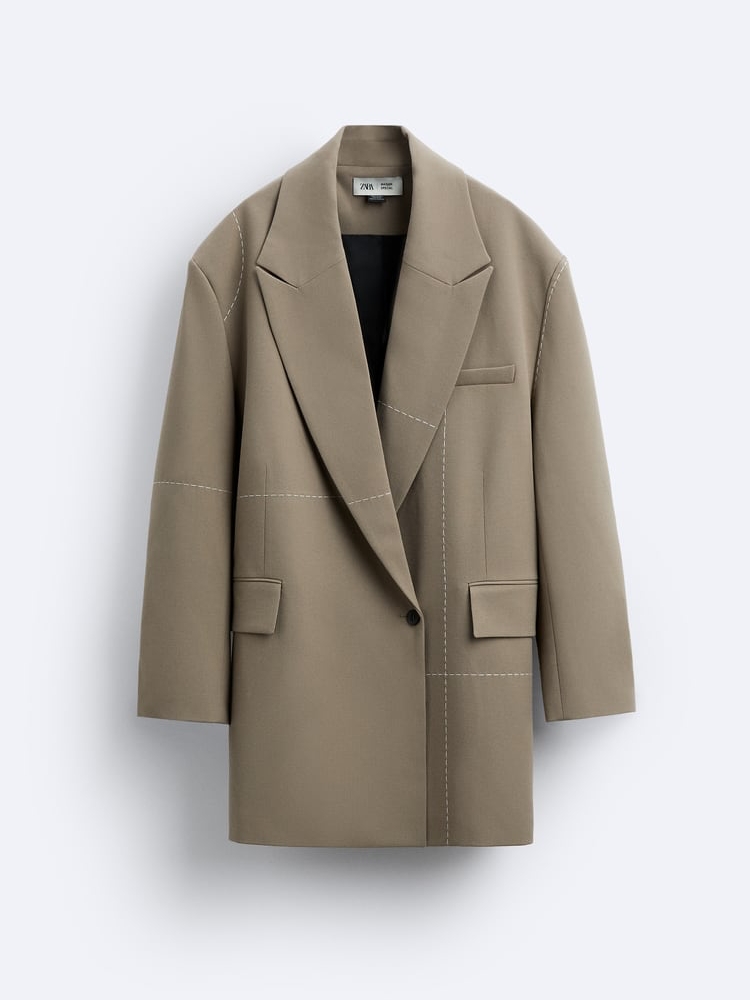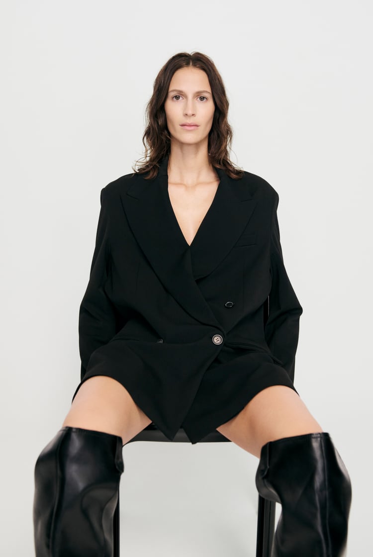 遮肉穿搭請看這!這件來自Zara Woman Collection的寬鬆版西裝外套,版型應該是這份清單中最有垂墜感的,而在設計上露出鎖骨、長度也到大腿的位置,是個能讓肉肉女生完美藏肉的首選!(價格:NT$3,990)