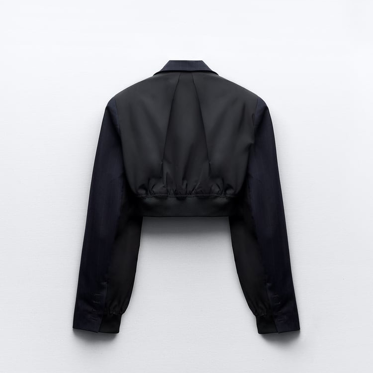 酷女孩請將目光借給它!這款短版西裝外套正面看起來平平無奇,但若是翻到背面即可發現飛行員外套的“背影”,不只能夠以正式樣貌穿出場,也能混搭成比較街頭的酷帥感,是個進可攻、退可守的選項!(價格:NT$2,490)