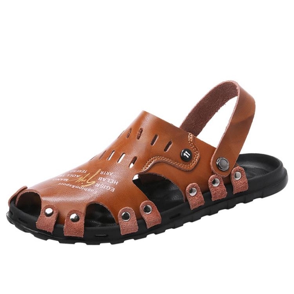 除了女生以及小孩的,這款是推薦給男生的不露腳趾涼鞋。鞋面使用牛皮材質,穿久了會更加鬆軟舒適,此款雖然沒有鞋跟,但有小小的增高效果,透氣又防滑也很耐磨。有黑色,黃棕,紅棕三個顏色可以選擇。