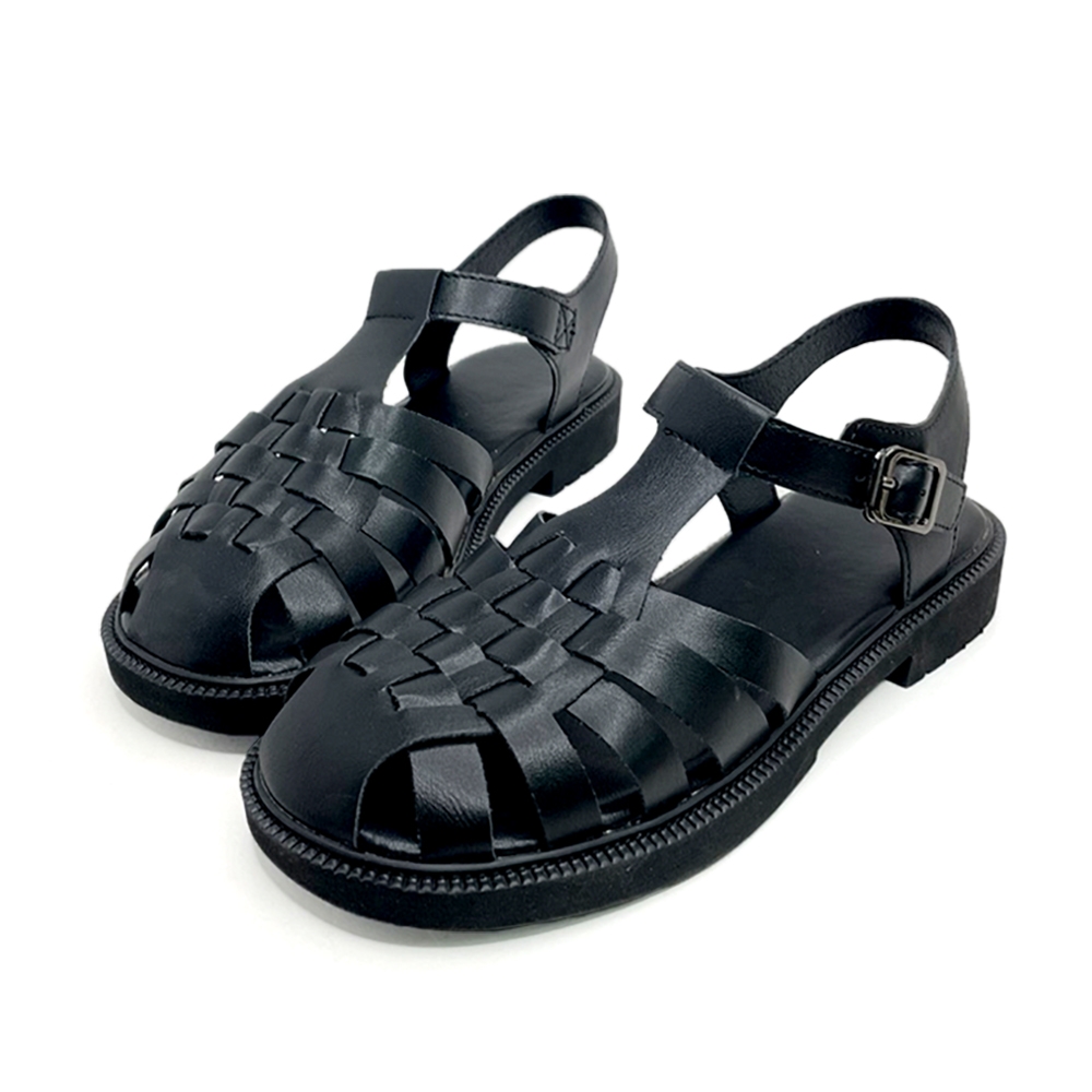 不露腳趾涼鞋推薦2. 編織漁夫真皮方頭平底涼鞋