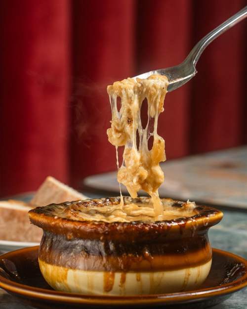 在巴黎的傳統小餐館中,必點的絕對是「湯」,除了可以快速暖胃、暖心,也可以從中看出主廚功力的方式。Gras 堅持法式傳統做法,材料不多卻樣樣講究,選用黃洋蔥,長時間的小火翻炒,洋蔥在焦糖化的過程中,變成甜滋滋的香氣。經數小時的熬煮、不停攪拌,才能煮出。微涼的季節,特別適合享受。