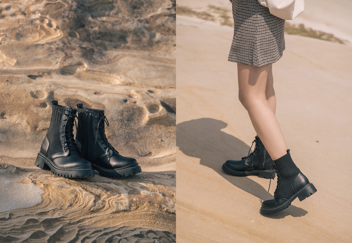 明星聯名商品推薦五:Grace Gift 薛妞妞聯名-真皮針織綁帶軍靴