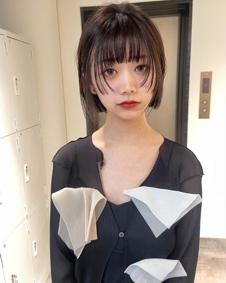 日系短髮這幾季也相當受歡迎,瞄準亞洲女孩頭型上的弱點,以及修飾臉型的期待,這款日系鮑伯頭,不只在剪裁上保留頭型的飽滿度,瀏海兩側的高層次輪廓更巧妙地修飾臉頰肉,創造瓜子臉效果,一點點小心機就能使整體造型煥然一新。