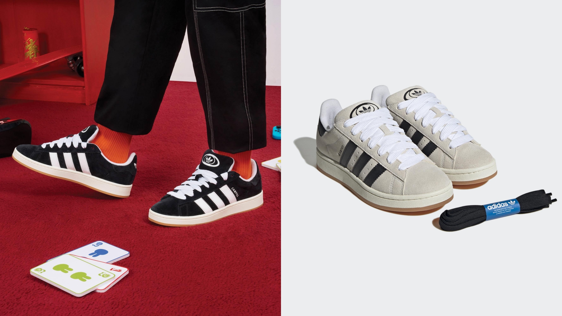 常被拿來與上兩款比較的 CAMPUS,本身也是當年代的主角單品,其原型來自 70 年代的一雙籃球鞋,透過麂皮素材的完美融入,使其成為音樂人、滑板人、舞者愛用的鞋款,是街頭流行文化的代表之一。至今,CAMPUS 依然廣受饒舌歌手、藝術家、穿搭博主的喜愛,品牌更於今年推出 CAMPUS 00 改良設計,加寬鞋型輪廓及鞋帶細節,讓鞋身多了一分圓潤可愛感,為經典鞋款帶來嶄新風格!