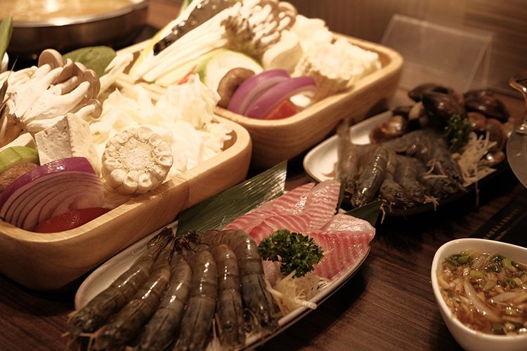 有別於市售火鍋店常見的剝皮辣椒湯底口味偏甜,樂崎的「剝皮辣椒」反而更注重辣,選用來自花蓮剝皮辣椒熬煮至入味,微辣又回甘,店家則推薦搭配新鮮蛤蠣及雞肉。我們選擇了白蝦+蛤蜊鍋,大概懂為何它們家的剝皮辣椒不會死甜了,新鮮的海鮮下鍋熬煮,讓鮮甜的海鮮襯托剝皮辣椒的香氣,使湯頭回甘不死鹹。