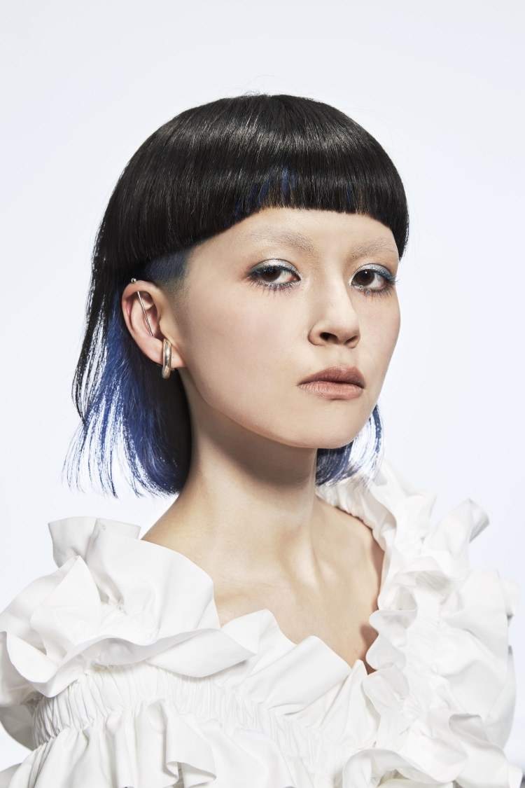 同樣以線條感為造型主軸,今年秋冬開始髮型圈也相當盛行個性強烈的「穆勒頭」!厚重的層次搭配刻意打薄的耳下短髮,延長了臉形線條、修飾了大臉輪廓,同時又為髮型增添一點中性不羈。造型上還很推薦以亮彩飽和髮色點綴,會更加亮眼。